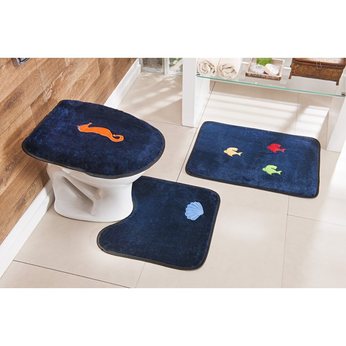 KIT BANHEIRO BORDADO 03 PEÇAS FUNDO DO MAR - MARINHO Vivart