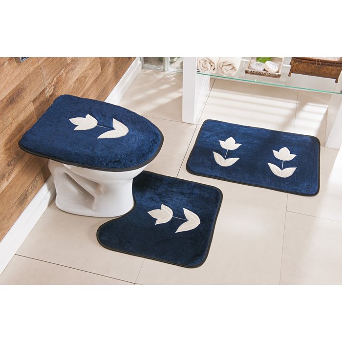 KIT BANHEIRO BORDADO 03 PEÇAS TULIPA - MARINHO Vivart