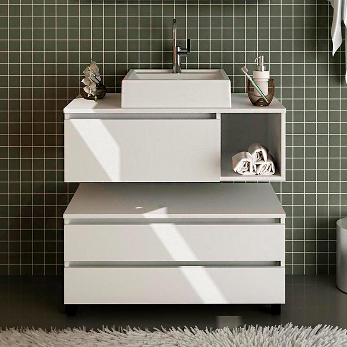 Kit Banheiro Com Cuba Inclusa Gabinete e Balcão Móvel Cor: Branco