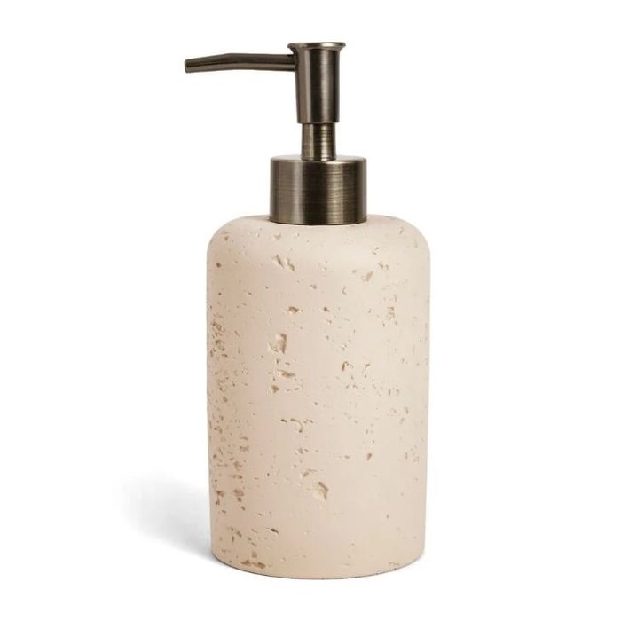 O porta-sabonete líquido em cimento é uma peça moderna e elegante que combina perfeitamente com a bandeja dourada. Feito em cimento resistente, ele é fácil de limpar e mantém o seu sabonete líquido sempre à mão.