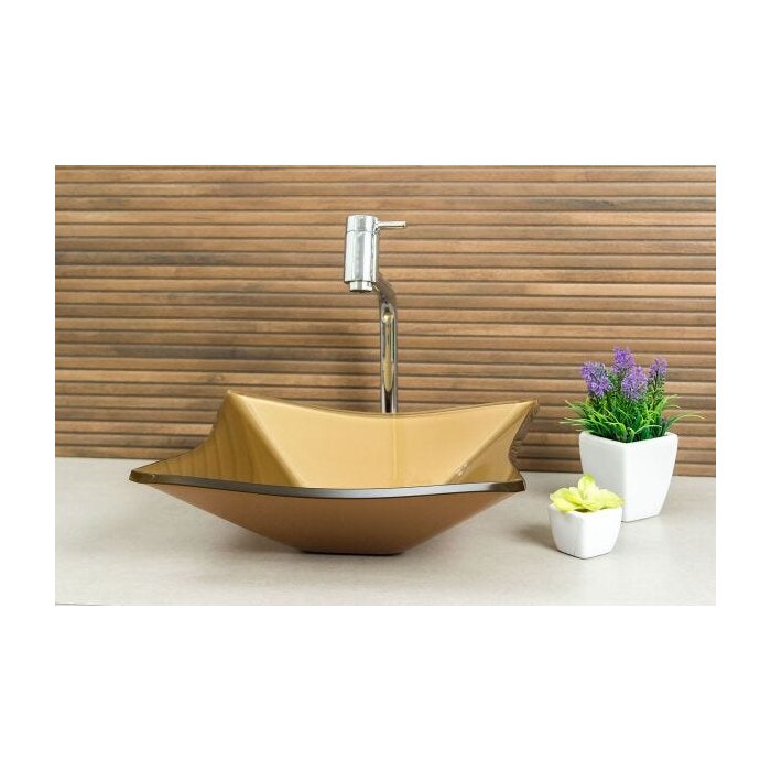 Kit Banheiro Cuba de Vidro Quadrada RT 30 cm + Torneira Link + Válvula Click - Bronze