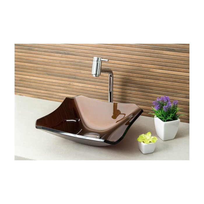 Kit Banheiro Cuba de Vidro Retrô 30 Cm + Torneira Link + Válvula Click - Marrom
