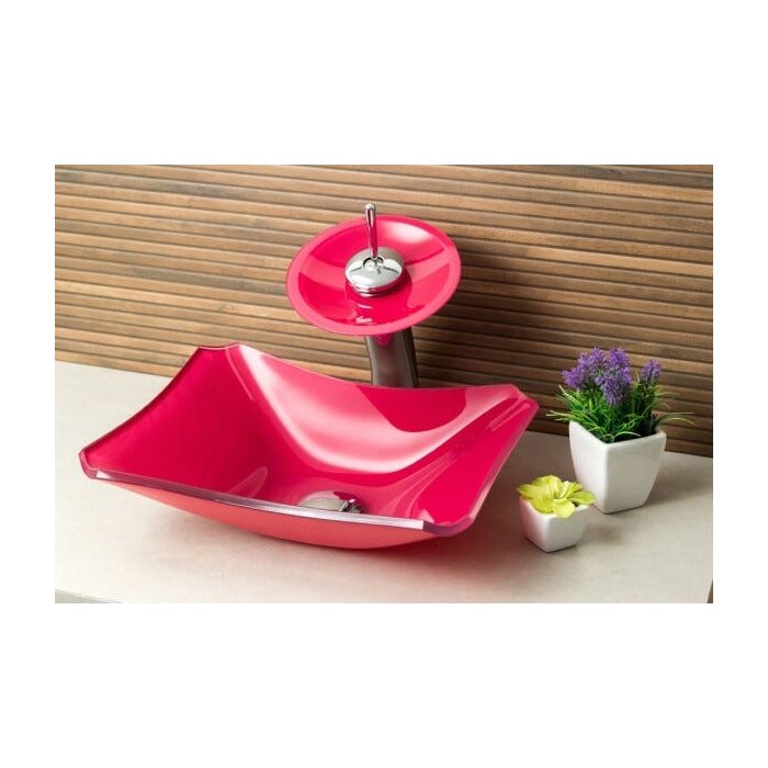 Kit Banheiro Cuba de Vidro Retrô 38 cm + Torneira Cascata + Válvula - Rosa