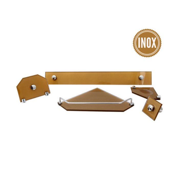 Kit Banheiro e Acessórios Em Vidro 8 Mm - Bronze Canto
