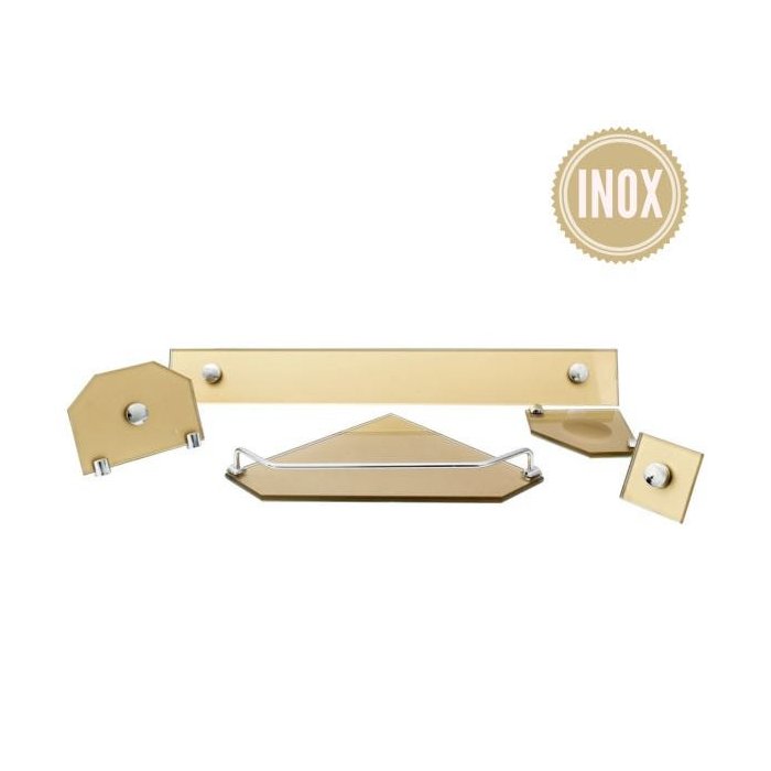 Kit Banheiro e Acessórios em Vidro 8 Mm - Dourado Canto