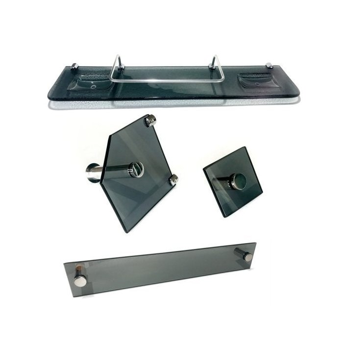 Kit Banheiro Em Vidro Casal 1 com 4 Peças.:Fumê Fumê