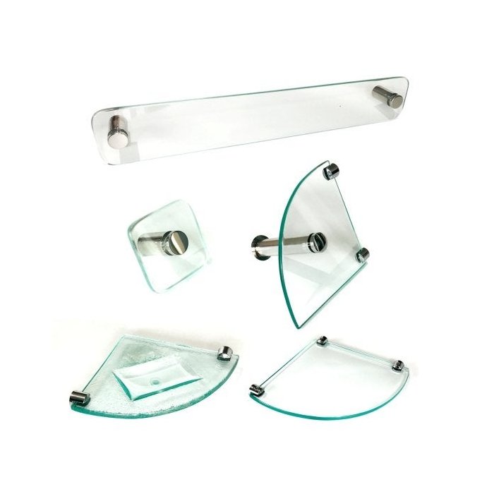 Kit Banheiro Em Vidro Casal Modelo 3 com 5 Peças:Incolor