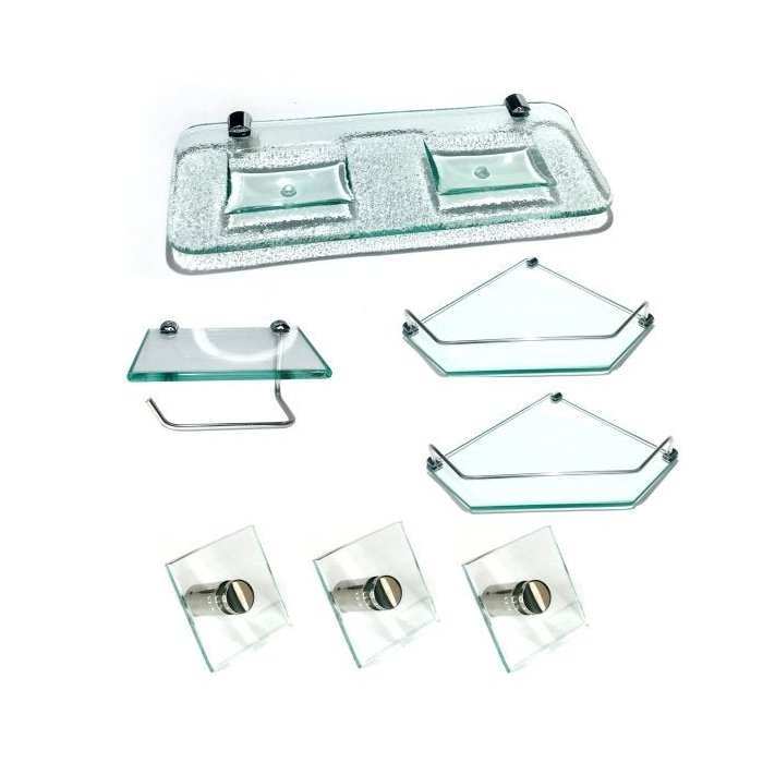 Kit para Banheiro em vidro, acompanha 7 peças, todas completa com fixação, bucha e parafuso, ideal para Banheiro de Casal.