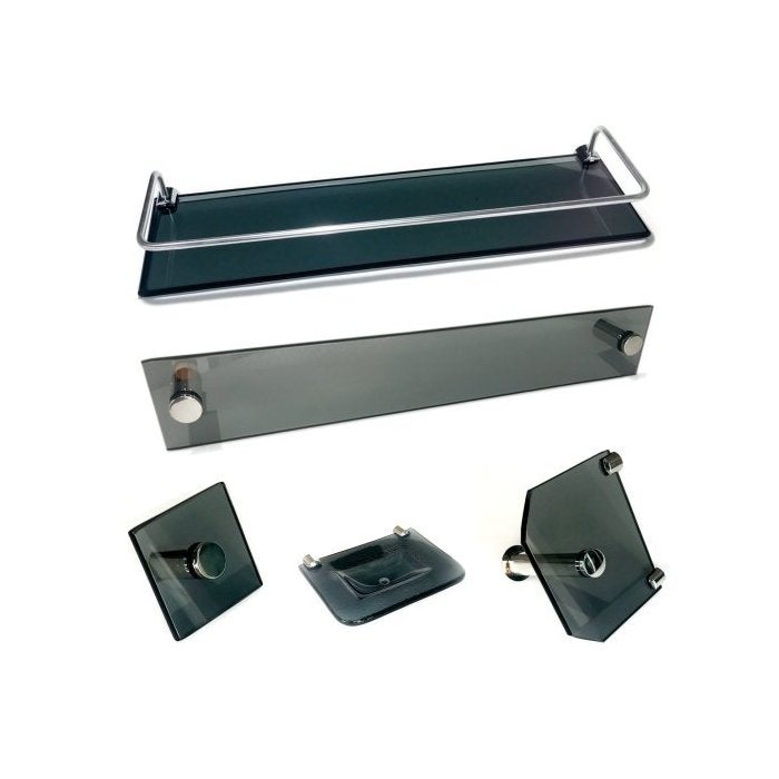 Kit Banheiro Em Vidro Casal Modelo 5 com 5 Peças:Fumê Fumê