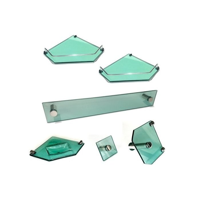 Kit Banheiro em Vidro Família Modelo 2 com 6 Peças:Verde