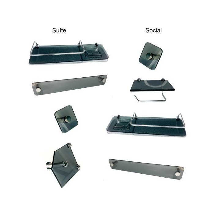 Kit Banheiro em Vidro Família Modelo 5 Com 8 Peças:Fumê Fumê