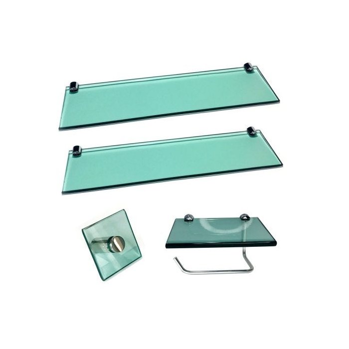 Kit para Banheiro em vidro, acompanha 4 peças, todas completa com fixação, bucha e parafuso, ideal para Lavabo.