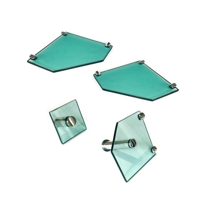Kit Banheiro Em Vidro Para Lavabo Modelo 3 com 4 Peças:Verde