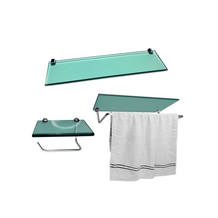 Kit Banheiro em Vidro Para Lavabo Modelo 4, acompanha 3 peças, todas completa com fixação, bucha e parafuso, ideal para banheiro pequeno ou Lavabo.
