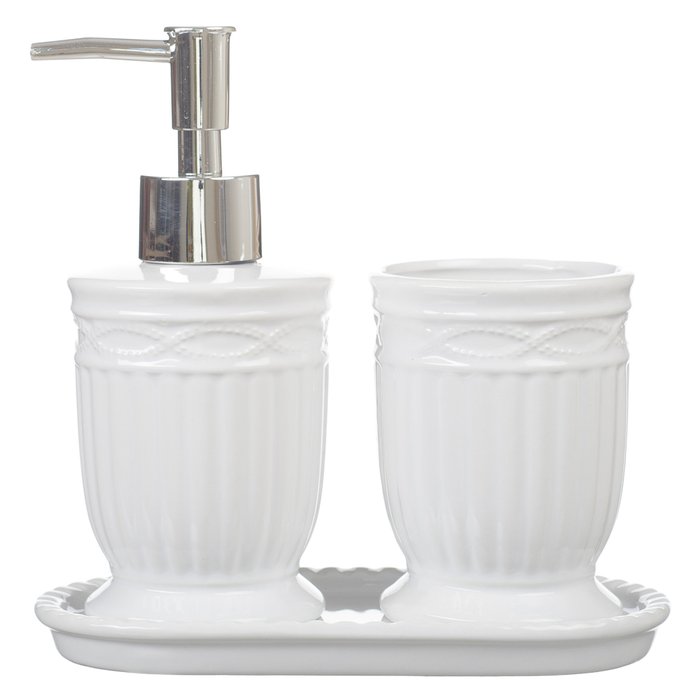 Kit Banheiro Lavabo Conjunto + Bandeja 3 Peças Branco Greece Branco