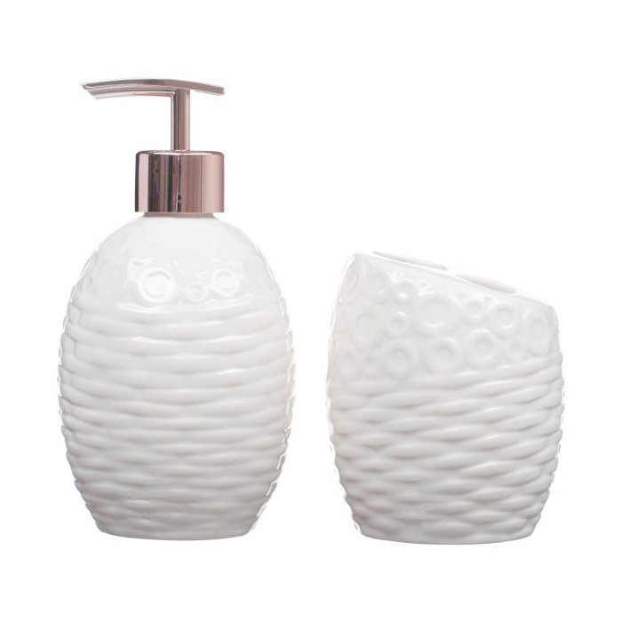 Kit Banheiro Lavabo Porta Sabonete Líquido 2 Peças/ Rosê 070 Off White