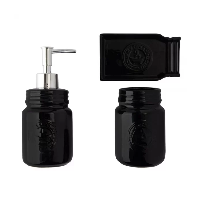 Kit Banheiro Lavado Acessórios Luxo Preto Cerâmica 3 Peças -