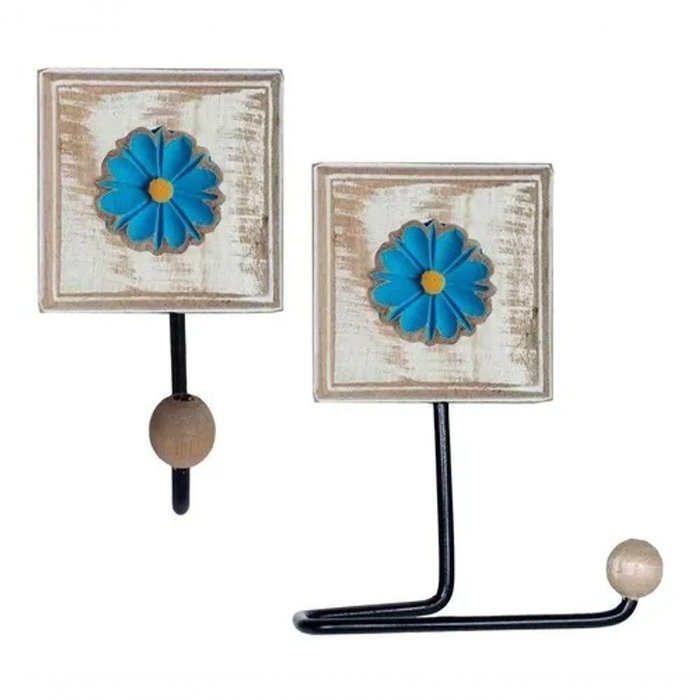 Kit Banheiro Porta Papel Higiênico + Toalheiro Flor Cor Azul Azul