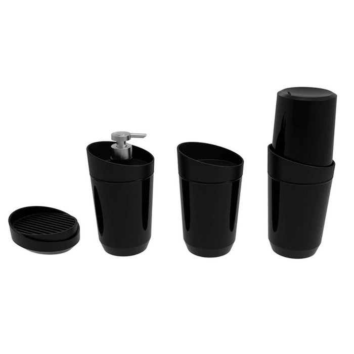 Kit Banheiro Preto Crippa 4 Peças Porta Escova Porta Sabonete Líquido Porta Algodão e Saboneteira Preto