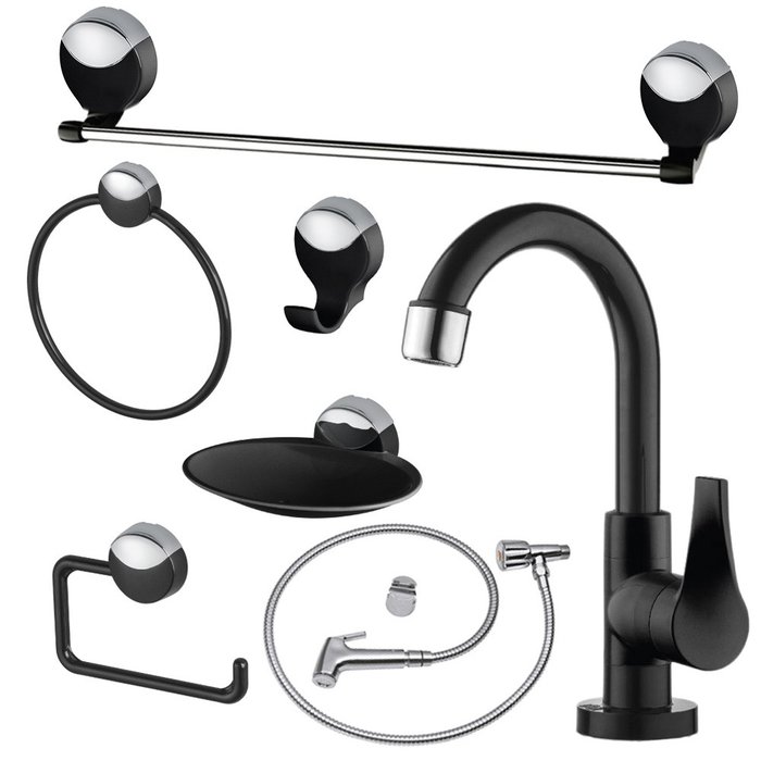 Kit Banheiro Preto Lavello Completo com Torneira Twist e Ducha Higiênica