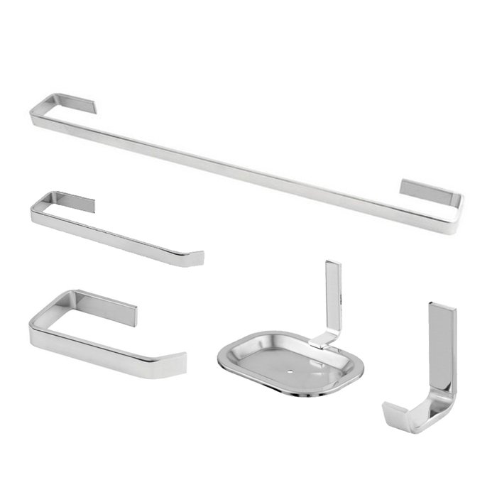 Kit Banheiro Quadrado 5pcs Polido Cromado Linha Quadrus Stander