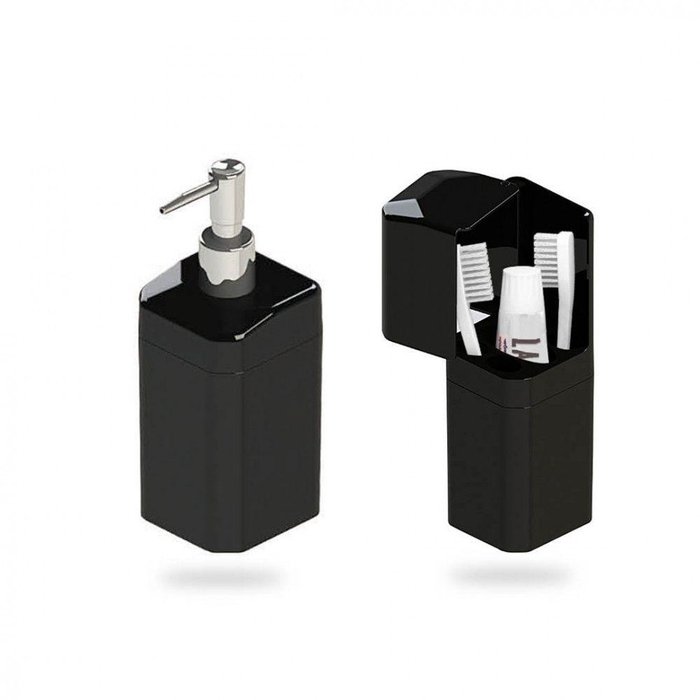 Kit Banheiro Roper Plast C/ Porta Escova/Sabonete Líquido Preto Preto