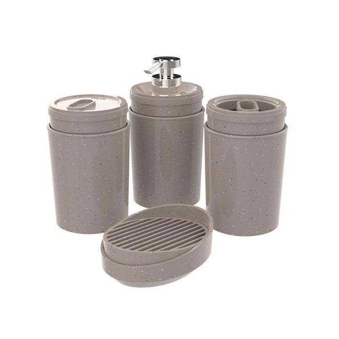 Kit Banheiro Stone Crippa com 4 Peças (porta Escova, Porta Sabonete Líquido, Porta Algodão e