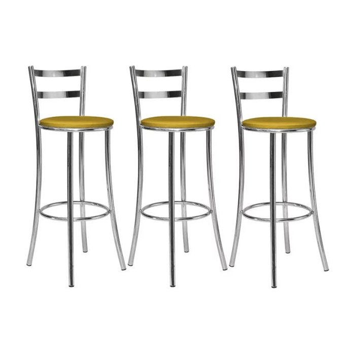 Kit Banqueta Alta Com Encosto 3 Peças BQ012 Cromado Amarelo Lafatelli