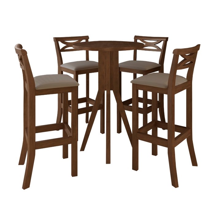 Kit Bar Bistrô Mesa Retrô 4 Banquetas Alta X Madri Madeira Maciça Pinhão Suede Bege - Ccs