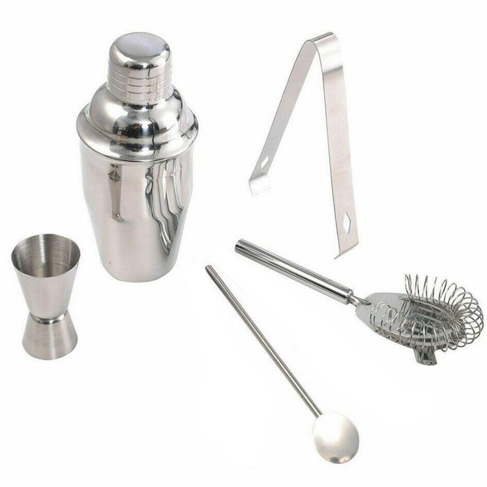 Kit Bar Coqueteleira Profissional com 5 peças em Inox para preparo de drinks, caipirinhas e uma infinidade de bebidas que você pode inventar.