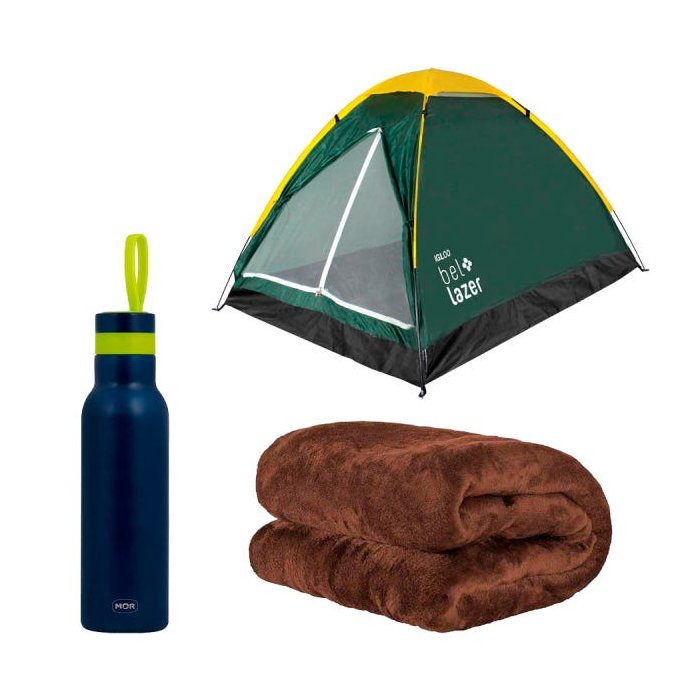 Kit Barraca Igloo 4 + Garrafa Térmica Azul + Manta Marrom