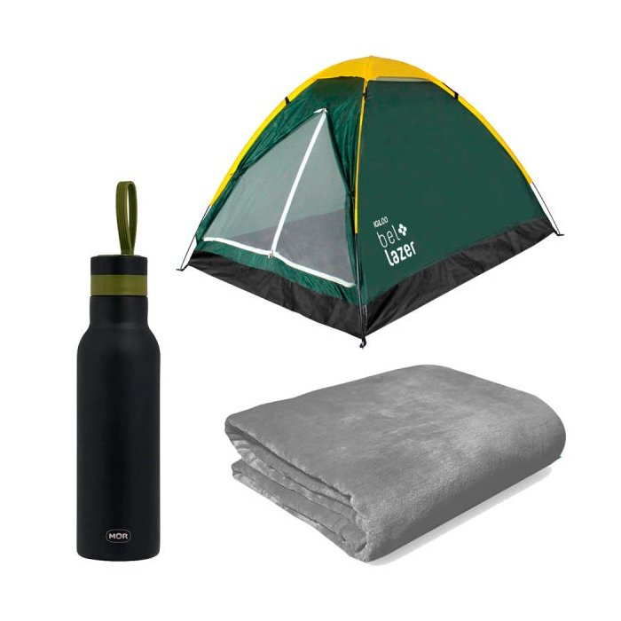 Kit Barraca Igloo 4P + Garrafa Térmica Preta + Manta Cinza