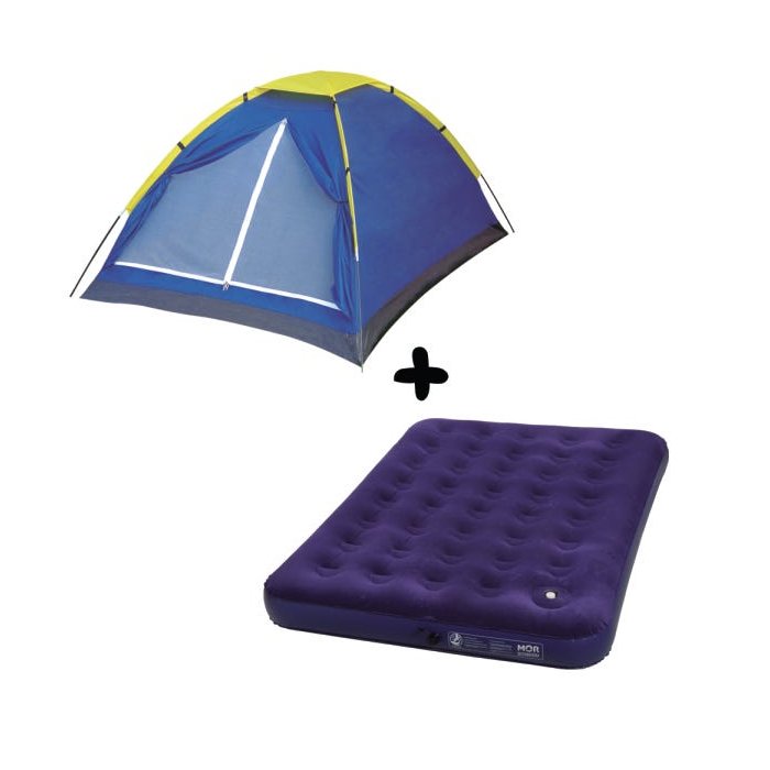 Barraca-Iglu-4-PesBarracas fáceis de montar, com peso e volume reduzido devido a sua estrutura em varetas de fibra de vidro interligando-as. São confeccionadas em poliéster, com a costura entre o piso e o dormitório invertida, evitando vazamento de água para o interior da barraca. O piso é confeccionado em polietileno para transporte.Especificações:Porta dupla com telaTecido da barraca: 100% poliésterPiso: 100% polietilenoVaretas: 100% fibra de vidroMosquiteiro na porta e no tetoLocal para pendurar lanterna dentro da barracaProteção contra vazamentos 300mm de coluna d'águaAcompanha sacola de transporteCapacidade para 4 pessoasInstruções ilustradas para montagemDimensões: 2,10 x2,10 x1,30 mPeso: 2,175KgColchao-Multiuso-CasalColchão Inflável de casal para camping com bomba de pé embutida, é excelente para casa, camping, aventuras em montanhas e praias. Ideal para seus momentos de descanso e lazer. Desenvolvido 100% em PVC. Fácil de transportar.Espeficicações:Tipo de colchão inflável CasalComposição/Material 100% PVCCor AzulFole embutido SimVálvula de ar de segurança SimVálvula para rápido esvaziamento SimInflador elétrico NãoInflador manual SimConteúdo da Embalagem 1 Colchão e 1 bomba de péDimensões aproximadas do produto (cm) A 191 x L 137x P 22 cmPeso líq. aproximado do produto (kg) 12,5Kg