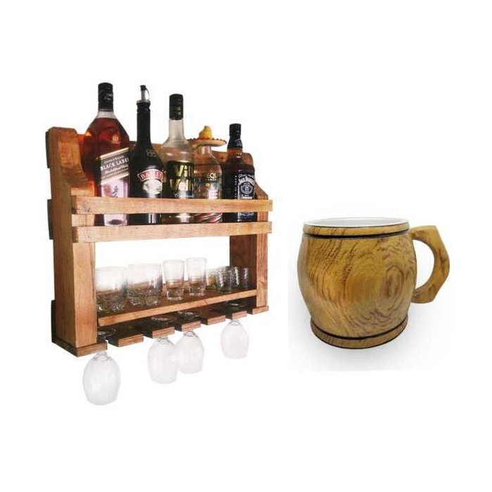 Kit Barzinho Rústico de Parede + Caneca 1 Litro Cerejeira Térmica - Palleter