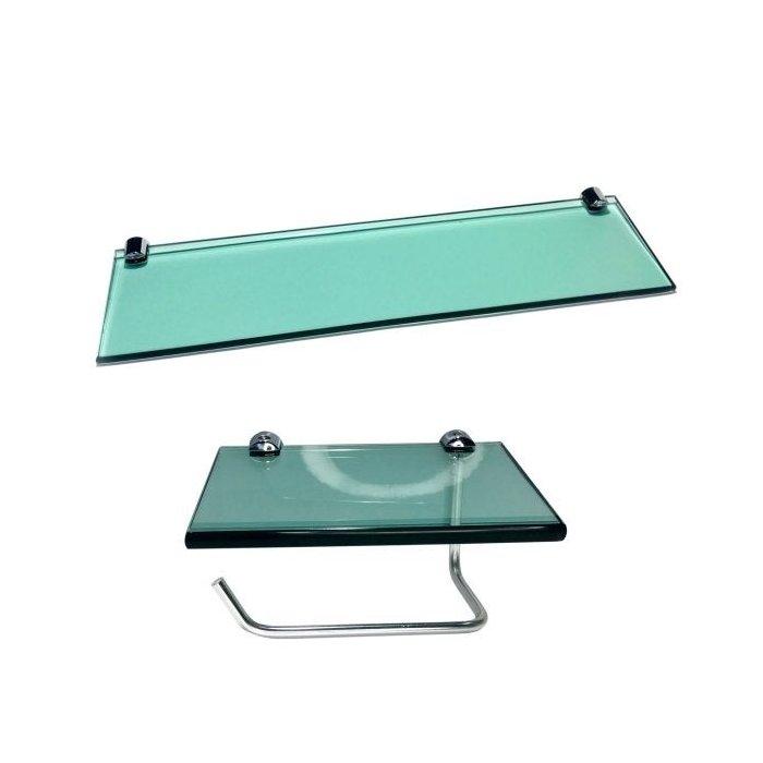 Kit para Banheiro em vidro, acompanha 2 peças, todas completa com fixação, bucha e parafuso, ideal para Banheiro pequeno.