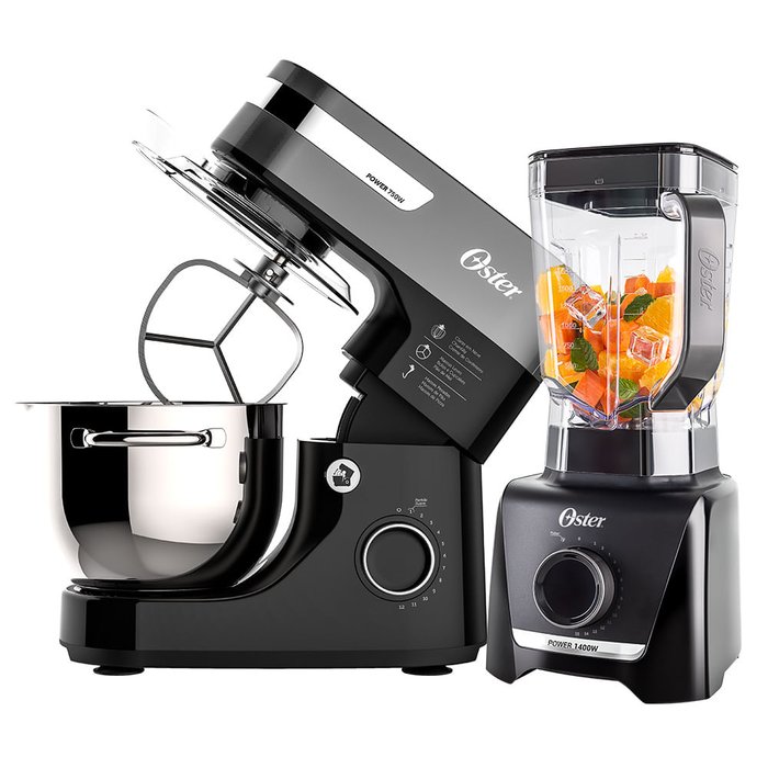 Kit Batedeira Planetária Oster Bowl Inox e Liquidificador 1400 Full - 127V