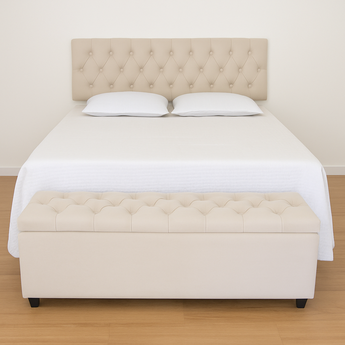 Kit Baú e Cabeceira Casal De140x50cm na Cor Bege Claro