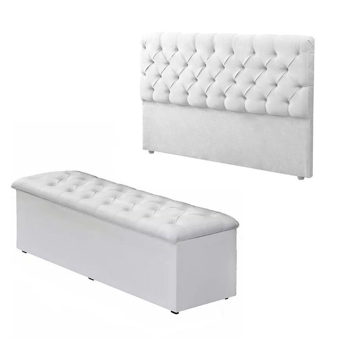 Lindo Conjunto Baú Recamier E Cabeceira Box Shop King Siza em Couro Sintético Branco. Ideal para quem busca modernidade para o quarto e espaço para guardar cobertores, roupas de cama, travesseiros, entre outros. Recomendado para cama king padrão 1.93m x 2.03m.Feitos com madeira reforçada 100% de reflorestamento garante durabilidade e a resistência do produto, acabamento em tecido Couro Sintético, tratamento antialérgico e antiácaro.