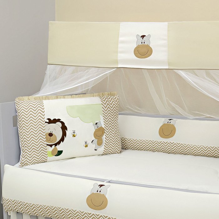 | Itens Inclusos | 1 edredom, 1 cabeceira, 2 laterais, 1 trocador, 1 lençol de cima, 1 lençol com elastico, 1 fronha, 1 bando de mosquiteiro, 1 filo |