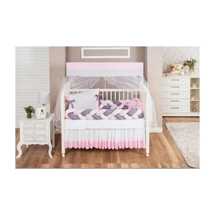 Kit berço para menina tamanho nacional e americano rosa claro com almofada de nó e trocador de bebe duas tranças 11p
