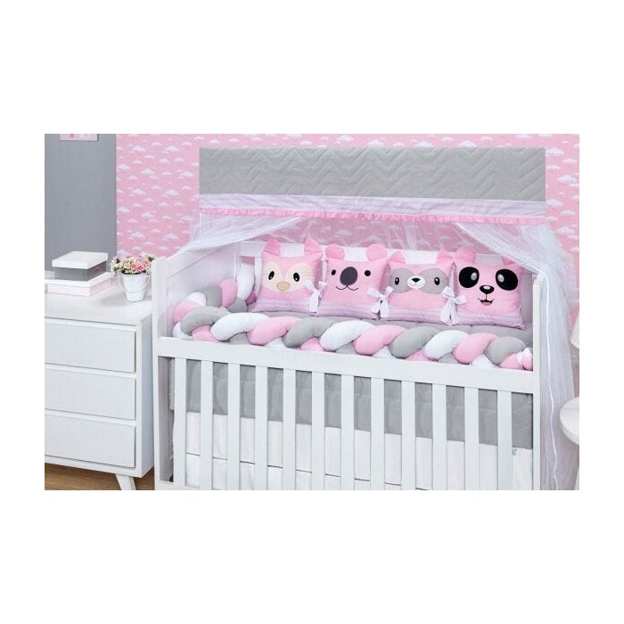 Kit Berço Americano 11 pçs Trança Amiguinhos Rosa