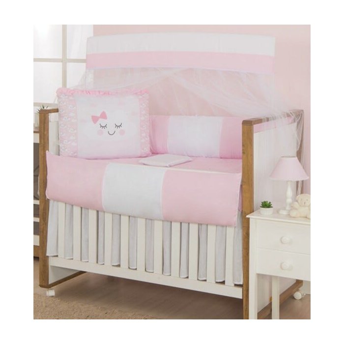 Kit Berço Americano 9 pçs Nuvem Rosa