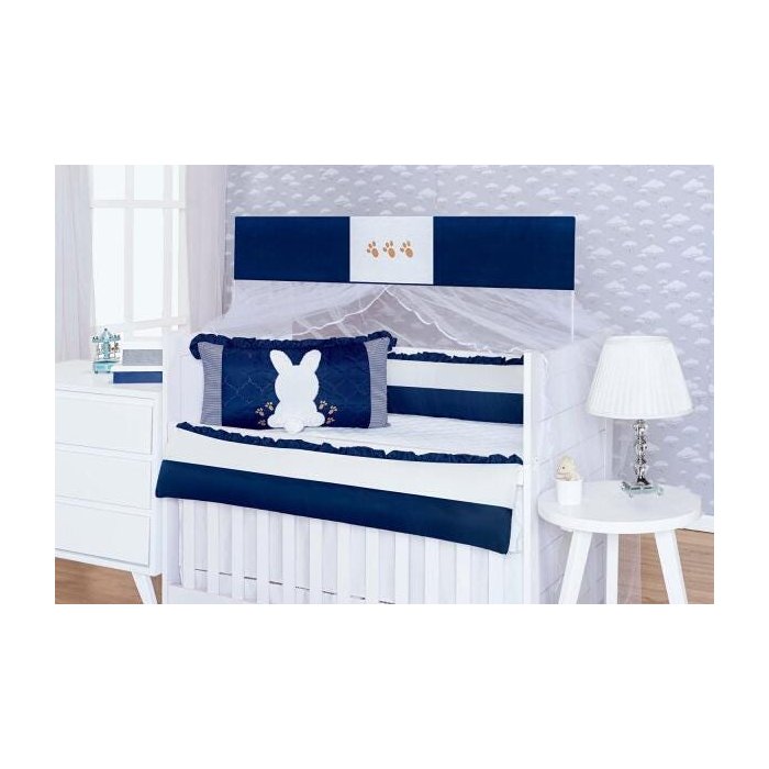 Kit Berço Americano 9 peças Meu Bebê Coelho Marinho