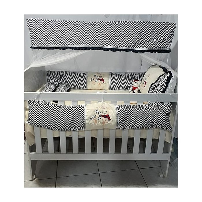 Kit Berço Americano Azul Marinho e Bege Urso Marinheiro Sonhos Baby