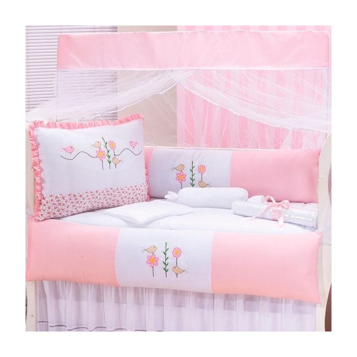 Kit Berço Americano Menina Passarinho Rosa 11 Peças ROSA