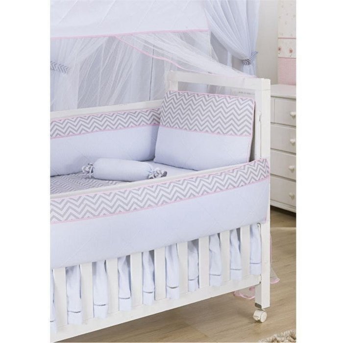 Kit Berço Chevron Rosa 10 Peças Cinza/Rosa - Laura Baby