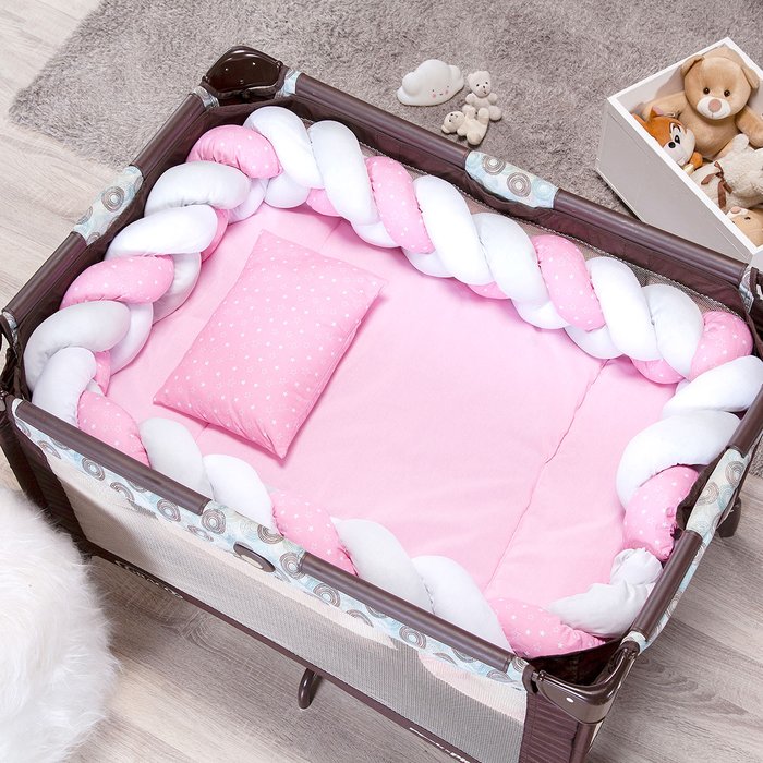 Kit Berço Desmontável Trança Estrelinha Rosa 4 Peças