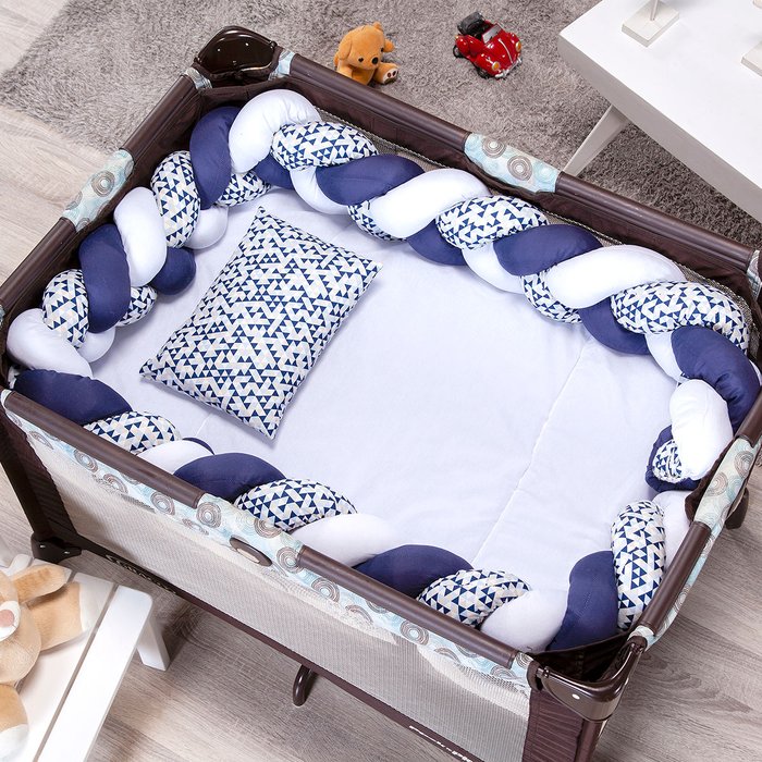 Kit Berço Desmontável Trança Province 4 Peças Menino Azul Marinho
