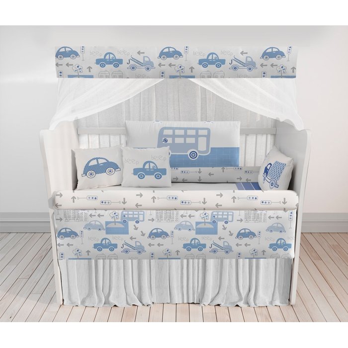Kit Berço Enxoval de Bebê Carrinhos Azul Menino