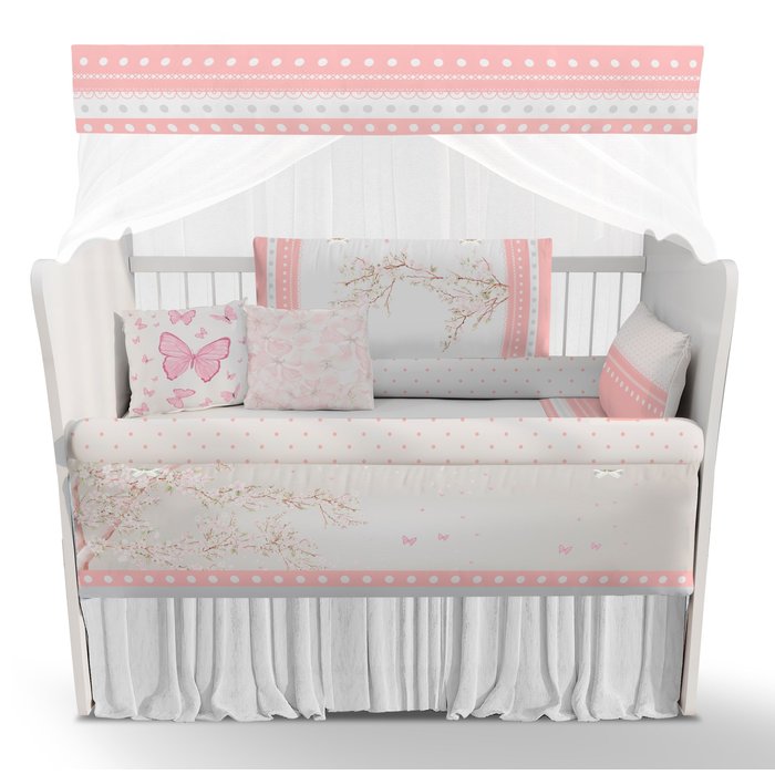 Kit Berço Enxoval de Bebê Floral Árvore Rosa - Kt511 Rosa